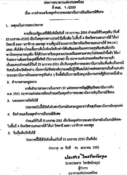| 23 มกราคม | วันตรุษจีน (Chinese New Year's Day) | วันหยุด 4 จว.ภาคใต้ | วันหยุด 4 จว.ภาคใต้ |