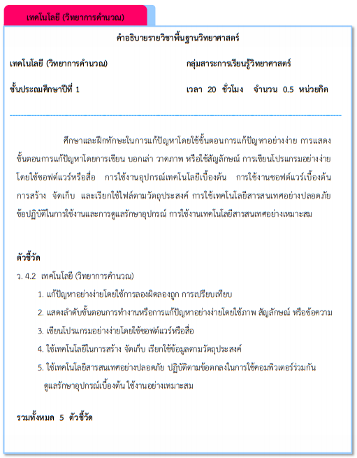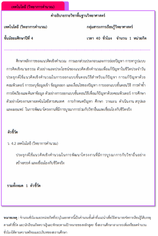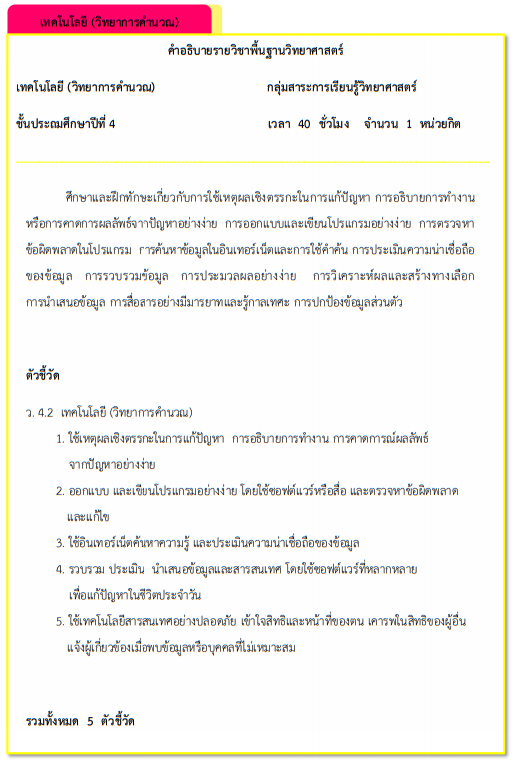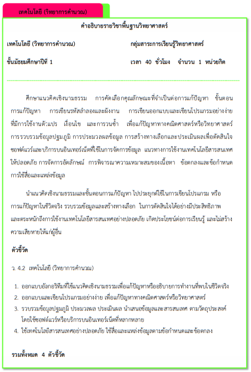 ![]() ![]() คำอธิบายรายวิชา วิทยาการคำนวณ (Computing science) |