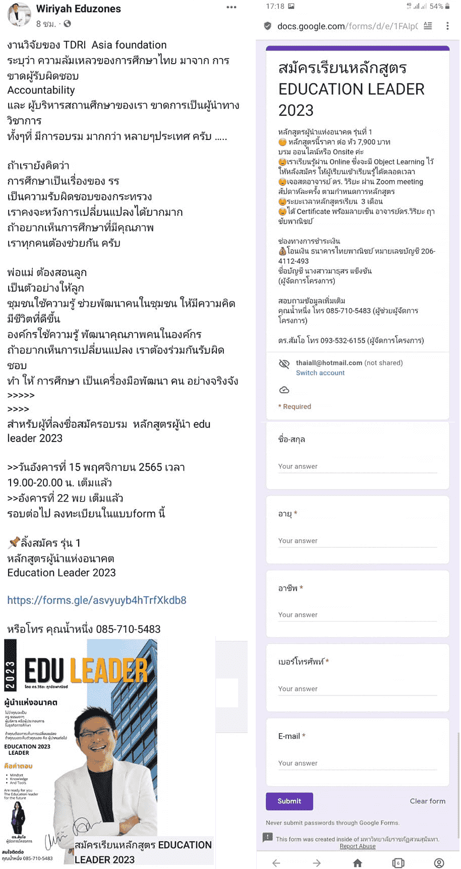 สมัครเรียน : หลักสูตรผู้นำแห่งอนาคต Education Leader 2023
