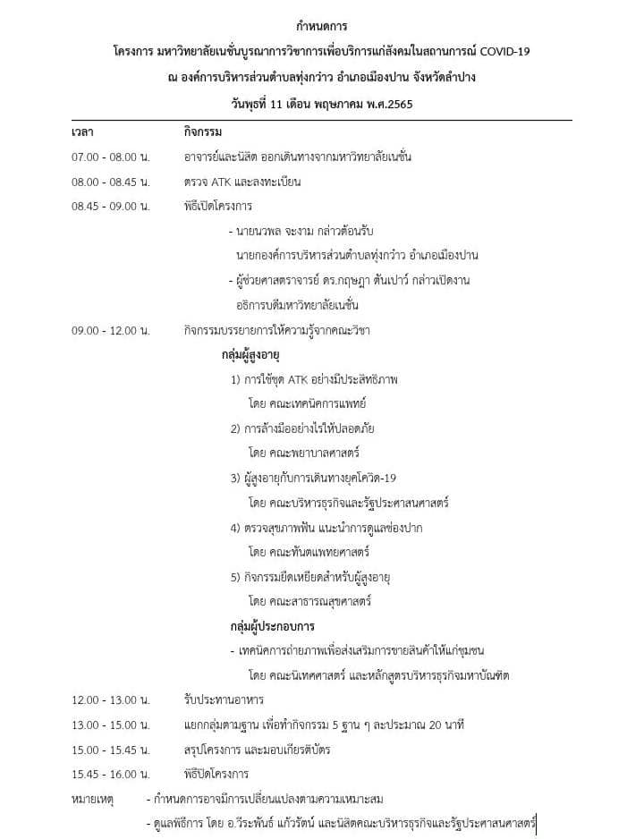 และเป็น โครงการ ดูแล ส่งเสริมสุขภาพ ผู้สูงอายุ โดยหมอมือใหม่ จิตอาสา มหาวิทยาลัยเนชั่นบูรณาการวิชาการเพื่อบริการแก่สังคมในสถานการณ์โควิด (Covid 19) โดย สโมสรนิสิตมหาวิทยาลัยเนชั่น ร่วมกับ คณะกรรมการนิสิต 5 คณะวิชา ซึ่งพบการเล่าเรื่องแบบ Story telling ในสื่อสังคมของมหาวิทยาลัยเนชั่น