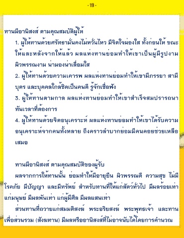 ผลจากการให้ทานนั้น ย่อมทำให้มีอายุยืน ผิวพรรณดี ความสุข ไมมี