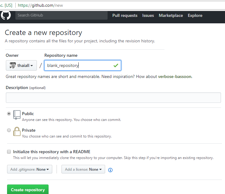 2. สร้าง repository บน github ที่ต้องการ import รหัสต้นฉบับเข้า github เพื่อหลีกเลี่ยงปัญหาการใช้คำสั่งบน command line สร้าง repository บน github คล้ายกับการสร้าง database ของ web server ทั่วไป