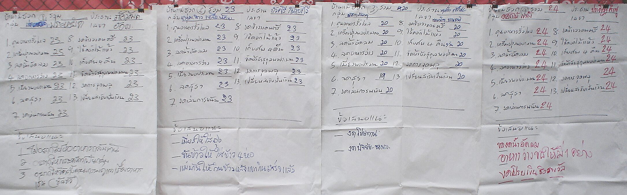 จึงทบทวนกิจกรรมและขอให้นักวิจัยแบ่งกันไปเขียนในเรื่องที่ตนถนัด เช่น กำนันเขียนประวัติ แพทย์เขียนวันดีวันเสีย แม่บ้านเขียนเรื่องไปดูงาน เป็นต้น