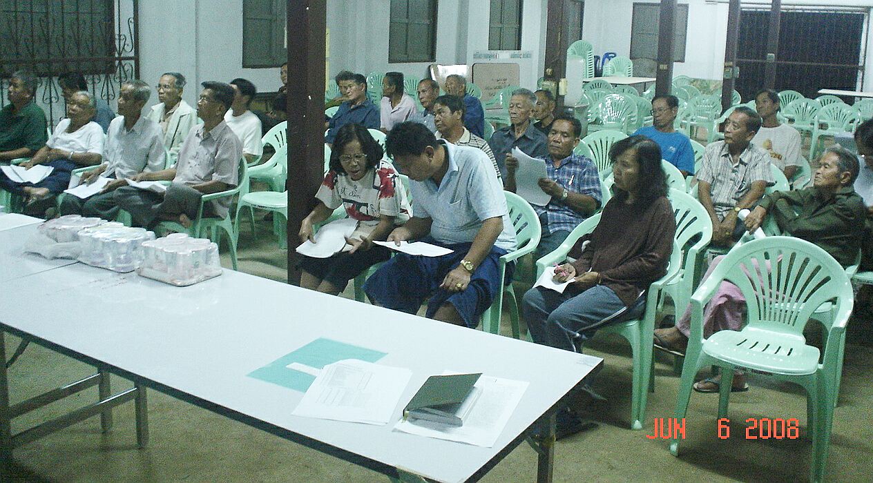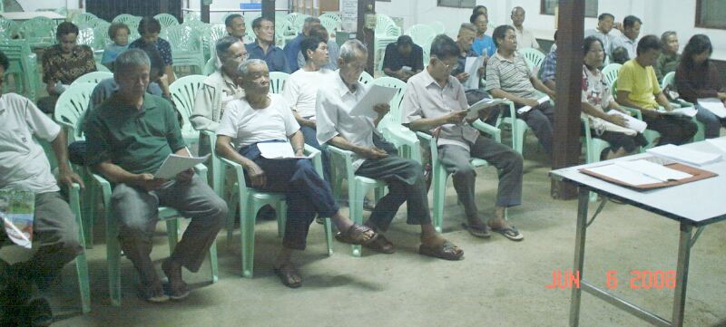 ก่อนประชุมวันที่ 18 มกราคม 2551 ได้นัดประชุมนอกรอบกับแต่ละหมู่บ้าน ระหว่าง 11 - 14 มค.52 เพื่อเตรียมการณ์ พิจารณาเอกสารที่จะใช้ในการประชาคม และทบทวนประเด็นอีกครั้งหลังไปศึกษาดูงาน