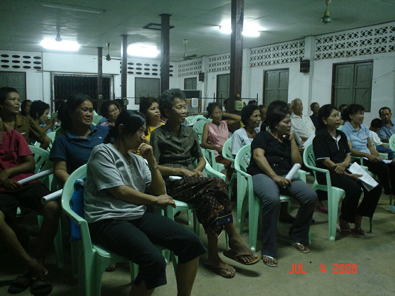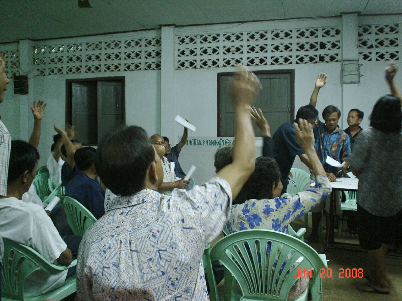 ส่วนบ้านเข้าซ้อนเลือกประชุมกลางวัน และทุกหมู่บ้านใช้วัดเป็นที่ประชุม