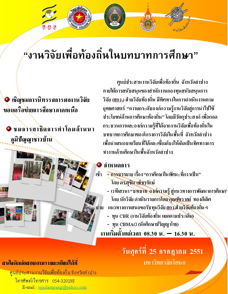โครงการวิจัย "รูปแบบการจัดการงานศพโดยยึดหลักเศรษฐกิจพอเพียง บ้านไหล่หิน ต.ไหล่หิน อ.เกาะคา จ.ลำปาง"