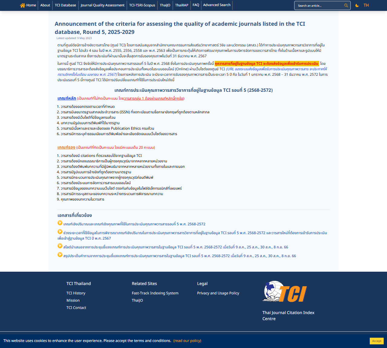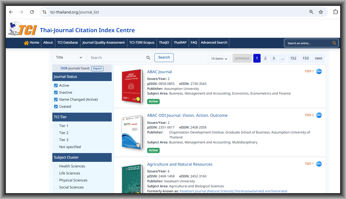 ตรวจสอบวารสารใน Thai-Journal Citation Index (TCI) (1422 รายการ - 28 ก.ค.67)